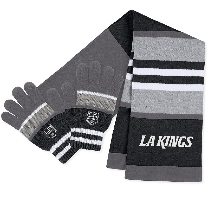 Women's WEAR by Erin Andrews Los Angeles Kings Stripe Glove & Scarf Set, Kgs TeamAs temperatures descend, heat things up with this Los Angeles Kings scarf and gloves set from WEAR by Erin Andrews. It features embroidered graphics that enhance your fandom in comfort. The knit design makes this cozy combo a stylish ensemble you won't hesitate to reach for on colder Los Angeles Kings game days.As tempWEAR by Erin Andrews