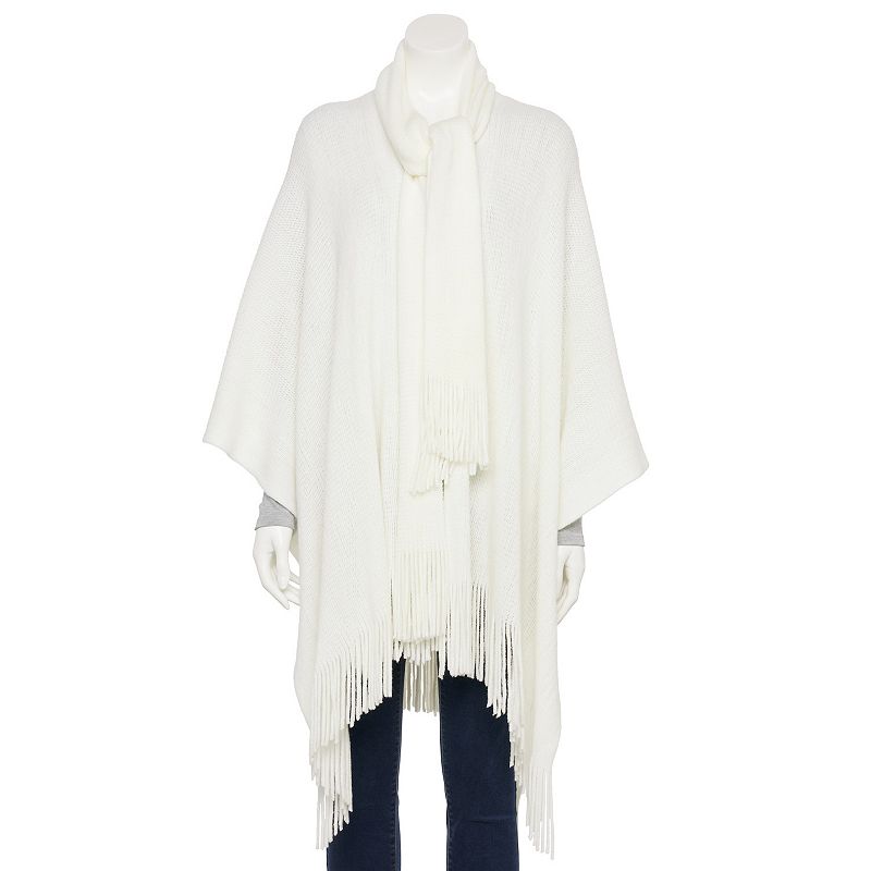 Women's Nanette Lepore Ruana with Scarf, BeigeDesigned with functional scarf and long fringe accent, this women's ruana from Nanette Lepore is the perfect choice for layering your look.Click on this WOMEN'S GUIDE to find the perfect fit and more!Designed with functional scarf and long fringe accent, this women's ruana from Nanette Lepore is the perfect choice forNanette Lepore