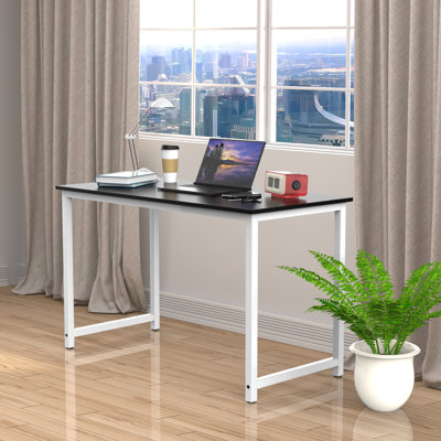 Gaming Computer Desk for Home Office, 47" Modern PC Laptop Office Desk for Kids and Students, SturdyHalter Gaming Computer Desk for Home Office, 47" Modern PC Laptop Office Desk for Kids and Students, Sturdy Writing Table and Hobby Workstation, Easy Assembly, Black Desk, Black Frame Halter Color: Black/WhiteHalter