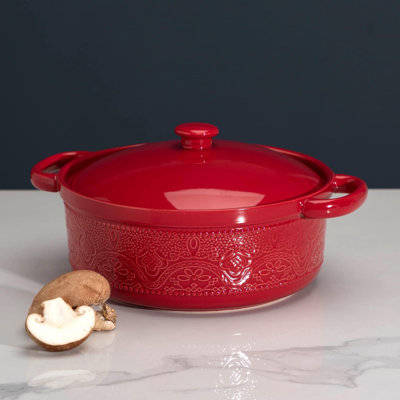HONBAY BakewareThis casserole dish is made of ceramic, and the surface is Lace embossed with 3 classic colors, just like an elegant artwork (we use an all-natural glaze, lead-free and non-toxic, you can rest assured that use). HONBAY Color: Christmas RedHONBAY