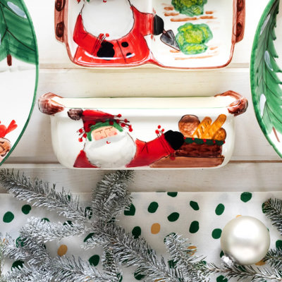Old St. Nick Loaf PanVIETRIs signature holiday collection is created from maestro artisan Alessandro Taddeis childhood memories of stories his mother used to read to him about Babbo Natale, Italys Santa Claus. Alessandro relays the stories through his whimsical designs on the Old St. Nick Loaf Pan, which depicts Old St. Nick offering a genVIETRI