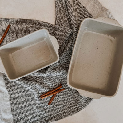 Saveur Selects Artisan Loaf Pan & Roasting Pan Set, GrayMake dinner and dessert with this culinary combo. Use the roasting pan to feed the entire family with a hearty one-pan meal of lasagna or a whole roasted chicken with vegetables; for a sweet treat, use the pan as a water bath for soufflés and custard. The loaf pan can similarly be used for both sweet or savory dishes aSaveur Selects