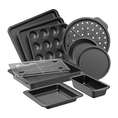 Baking Utensils Set, Baking Pan Set, Kitchen Non-Stick Pan, 10 Pieces, Cookie Board, Cake Pan, Bread Pan, Muffin Pan, Pizza PanThe ergonomic wide handles make this set suitable for all ageswhether you're a child learning to bake or a senior looking for easy-to-handle bakeware. Crafted from heavy-duty carbon steel, these pans ensure even heat distribution and the perfect bake every time, helping you recreate your familys favorite recipes with eFIRPIX