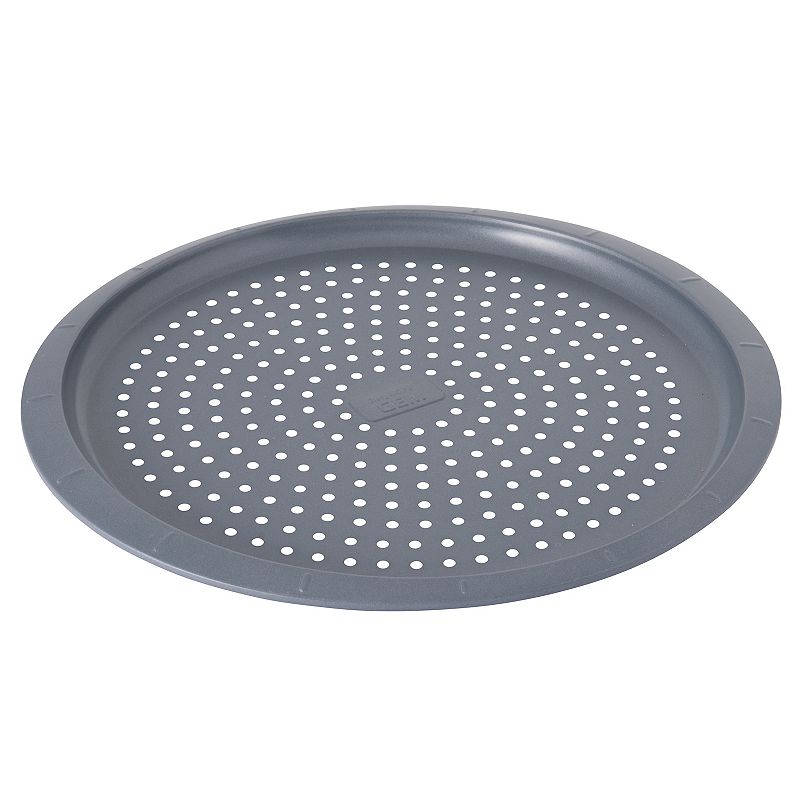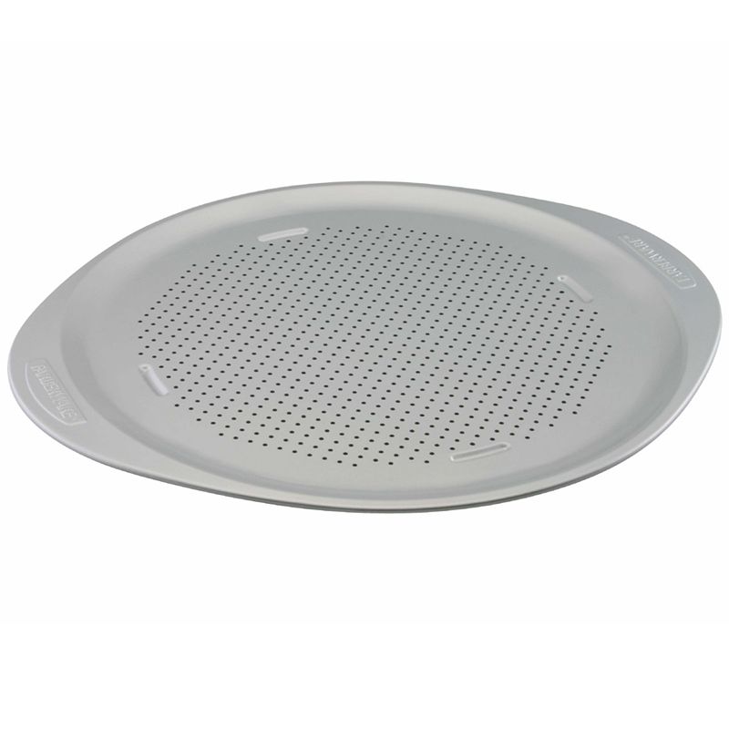 Farberware GoldenBake Nonstick Perforated Pizza Pan, 15.5-Inch, GreyThis pan's got pizzazz. Featuring an insulated design that disperses heat evenly, so you get even browning. And a nonstick surface for professional food release and cleanup that's a breeze. With a perforated bottom that allows steam to escape, so you get deliciously crisp pizza crust time after time. We can't think ofFarberware