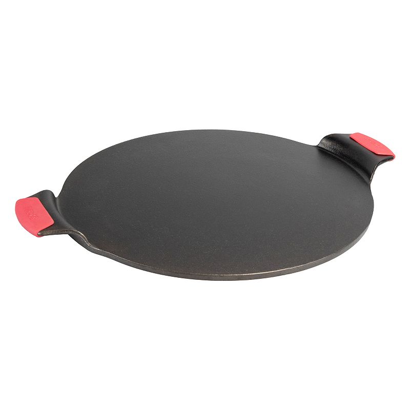 Lodge 15-in. Seasoned Cast-Iron Pizza Pan with Silicone Grips, BlackCrispy, restaurant-style crust has nothing on this Lodge cast-iron pizza pan. Its naturally seasoned cooking surface delivers great results and doesn't dent, bend or warp at high temperatures. Crispy, restaurant-style crust has nothing on this Lodge cast-iron pizza pan. Its naturally seasoned cooking surface delivers gLodge