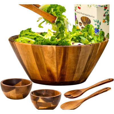 Wooden Salad Bowl Set - 12" Acacia Wood Bowl, 2 Small Sause Bowls, 3 Serving Utensils With Salad TongsGENEROUSLY SIZED 12" SALAD BOWL VERSATILE FOR SALADS, PASTA, FRUITS, AND MORE The Acacia Wood Salad Bowl Set features a generously sized 12" salad bowl, perfect for serving salads for 4-5 people. This spacious bowl is also ideal for pasta, fruits, snacks, and can even be used as a decorative item. Its large size makesMillwood Pines