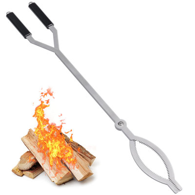 38-Inch Stainless Steel Fire Tongs With Ergonomic Handle - Serrated Claws, Heat-Resistant, For Fire Pit, Fireplace, And CampingThese 38-inch fire tongs are designed to safely and easily handle logs in fire pits, fireplaces, and wood stoves. Made from durable 304 stainless steel, they feature ergonomic rubber handles that provide a firm grip and extra comfort. The serrated claw design allows you to grab even large logs securely, while the heat-Latitude Run